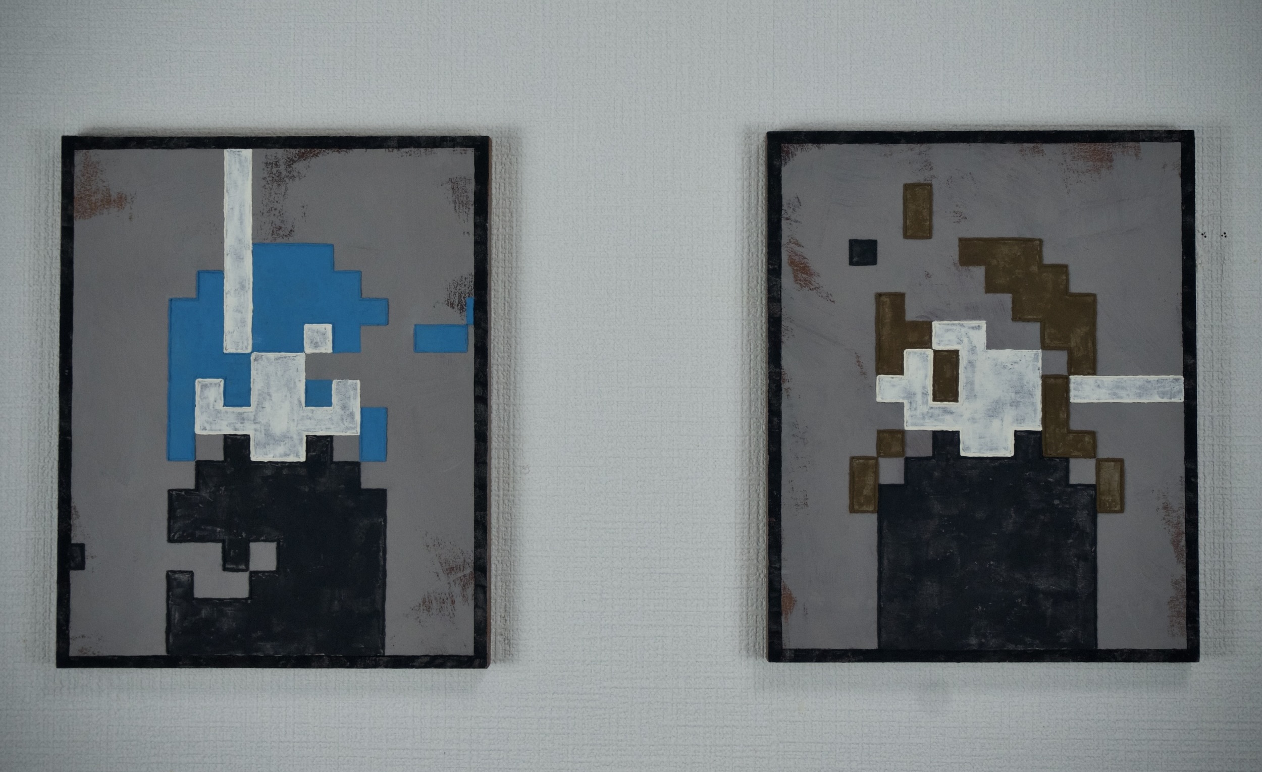oil, cold-wax, acrylic, modeling-paste on wooden panel.